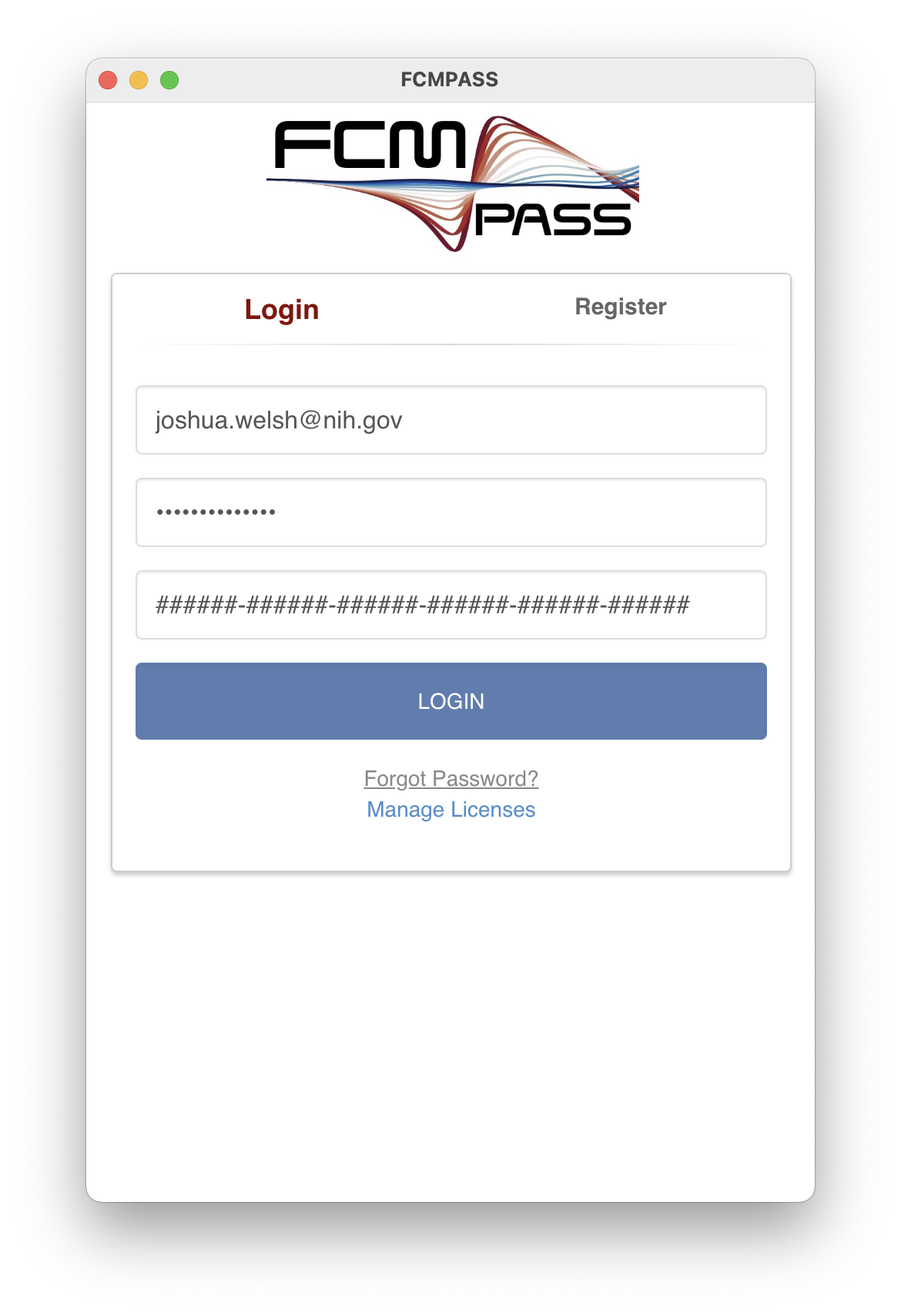 - Your account and license can be managed at https://license.fcmpass.com where you can login with your registered credentials
